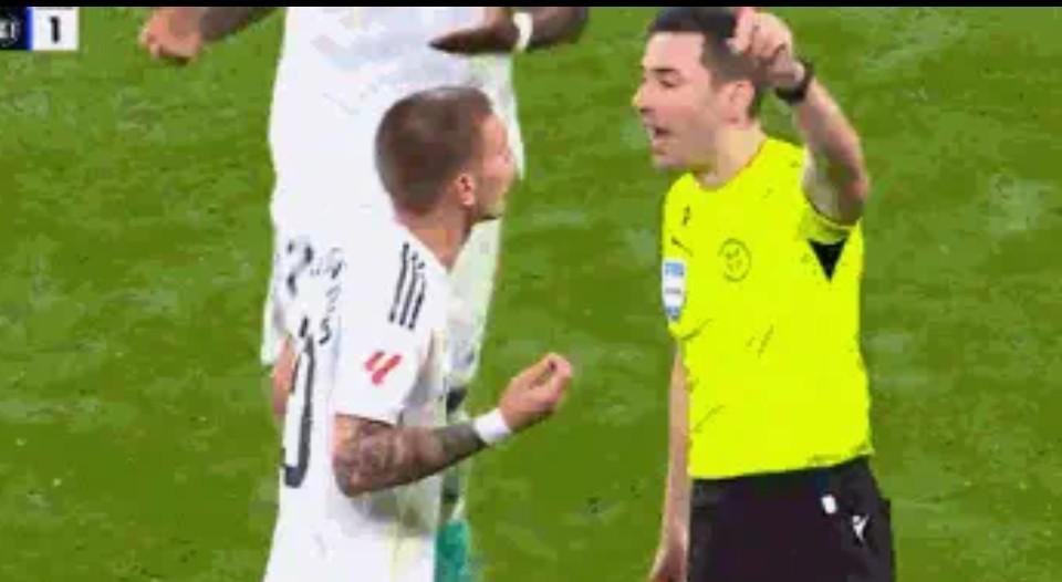 在比赛的最后阶段,马斯坦托诺对主裁判表示:“真耻辱,真TM的耻辱!”,随后他便被主裁判直红罚下。