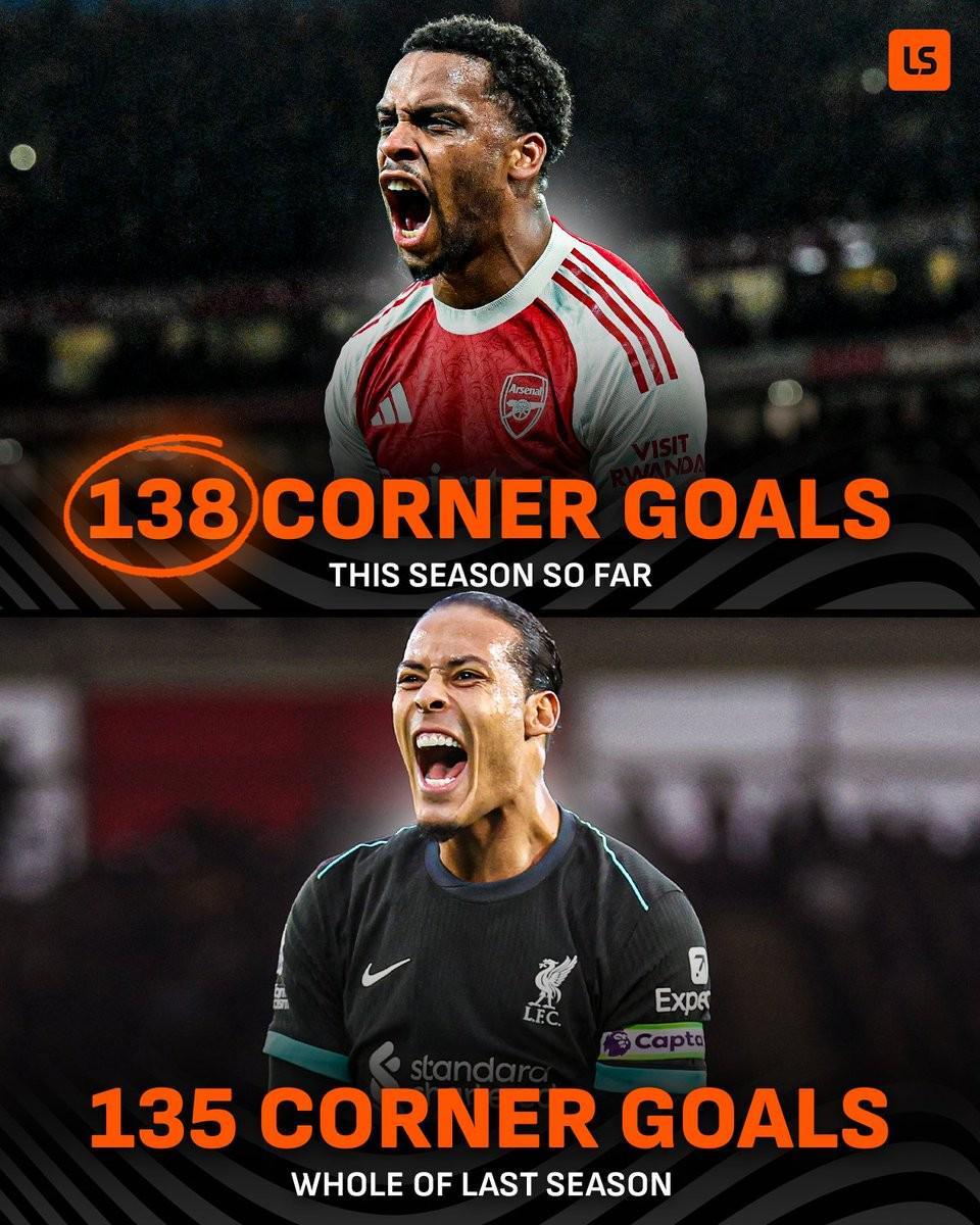 根据LiveScore的统计,本赛季英超前28轮过后(阿森纳和狼队多赛一场),共计281场比赛已经出现了138粒通过角球完成的进球,超过了上赛季135球的总和,而本赛季的英超还剩余10轮,还有接近100场比赛,上述138球的数据无疑会进一步增加。